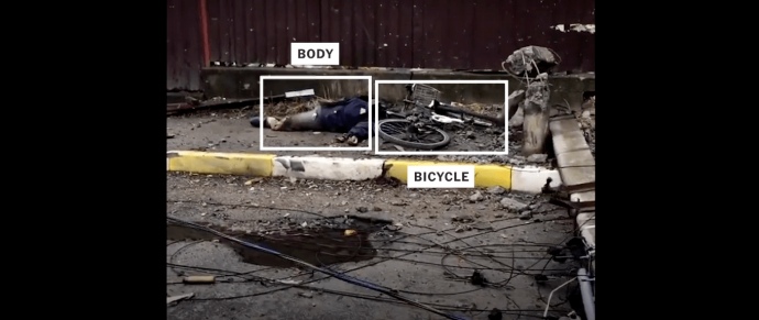 Відео вбивства велосипедиста в Бучі, зняте з повітря українськими військовими на початку березня, опублікував NYT.