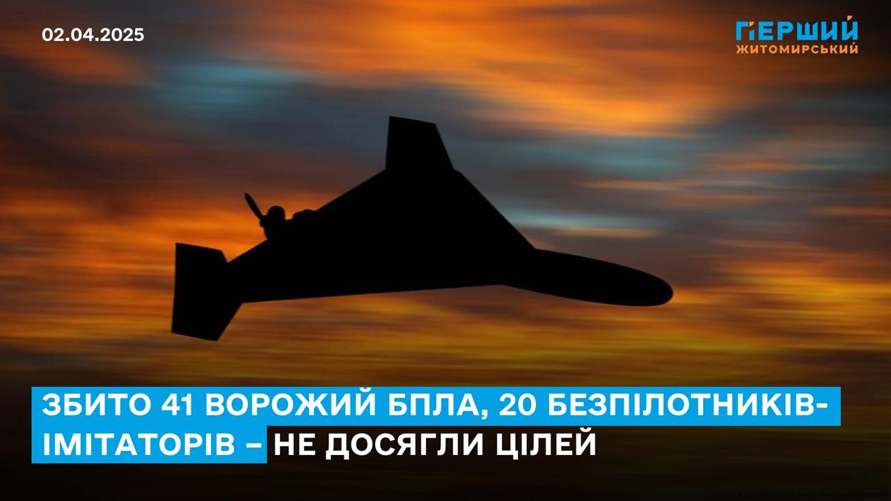 Повітряну атаку відбивали авіація, зенітні ракетні війська, мобільні вогневі групи та підрозділи радіоелектронної боротьби. Станом на 09:00 знищено 41 ударний дрон Shahed на півночі, півдні та сході країни. Ще 20 ворожих безпілотників-імітаторів локаційно втрачені, не досягнувши цілей.