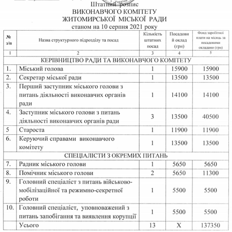 Розпорядження “Про затвердження штатних розписів” підписав мер 10 серпня.