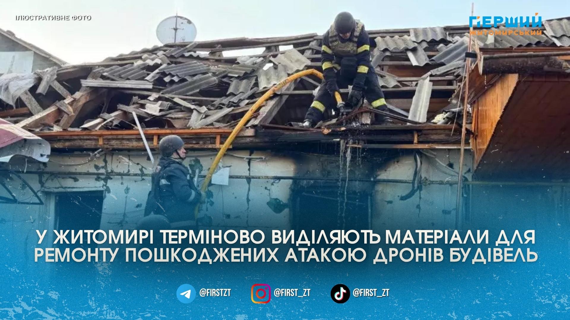 У Житомирі продовжують ліквідовувати наслідки ворожої дронової атаки, що сталася 24 березня. Містянам, чиї оселі зазнали руйнувань, нададуть матеріали для тимчасового закриття вибитих вікон та пошкоджених конструкцій.