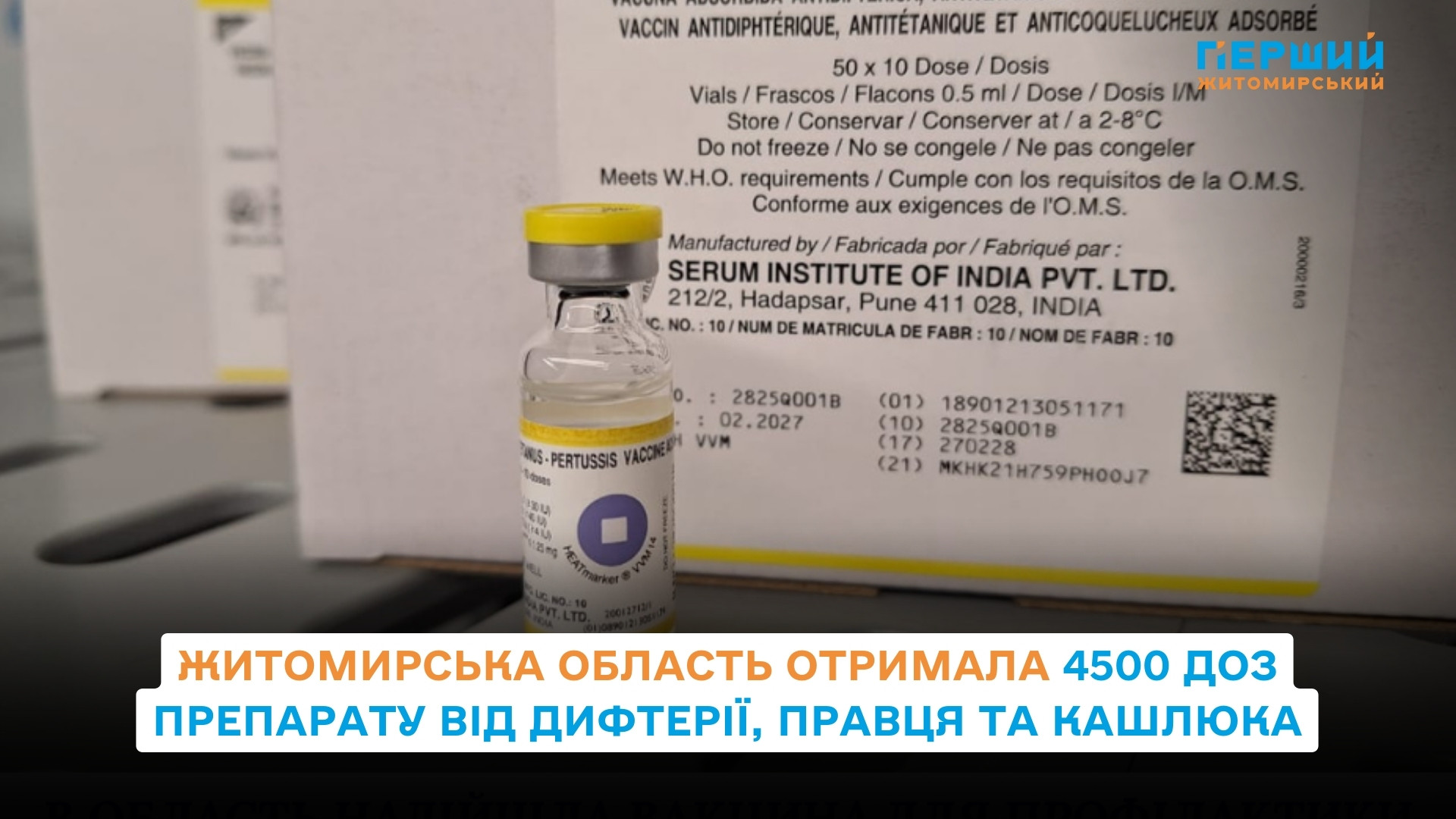 До складу імунобіологічних препаратів області надійшло 4500 доз вакцини DTP (виробник – Serum Institute of India PVT.LTD, India). Вона призначена для дітей від 2 місяців до 6 років 11 місяців 29 днів.