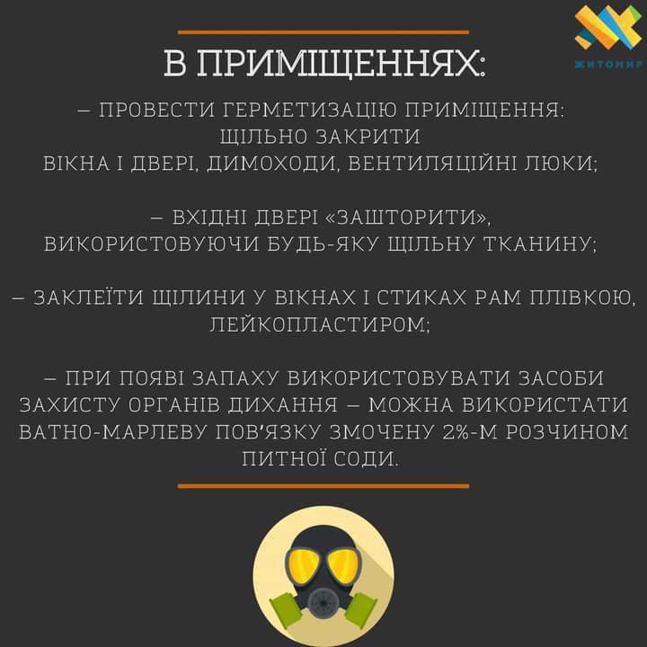 - Провести герметизацію приміщення щільно закрити вікна та двері, димоходи, вентиляційні люки;