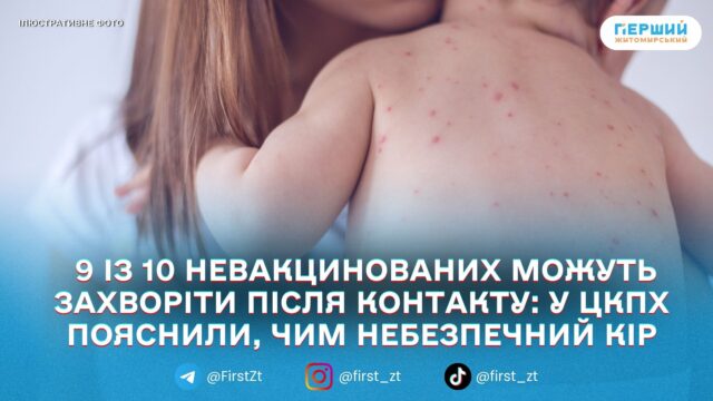 Житомирський обласний центр контролю та профілактики хвороб нагадує, що кір є однією з найбільш заразливих інфекцій. За інформацією ЦКПХ, 9 із 10 невакцинованих людей можуть захворіти після контакту з хворим. Також зазначають, що вірус здатний залишатися в повітрі та інфікувати до двох годин після того, як хворий залишив приміщення. Найбільш вразливими є діти, які не мають щеплень.