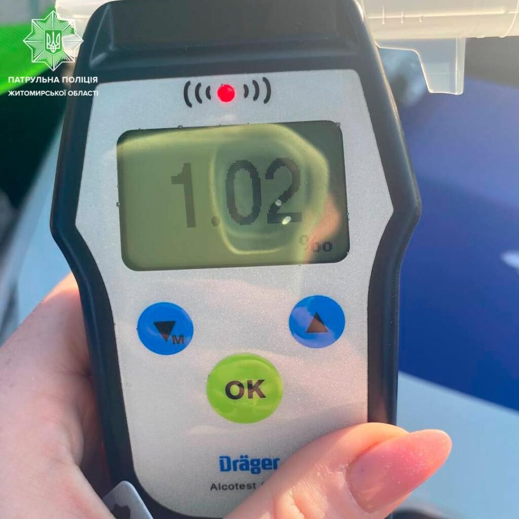 3 січня пасажир автобуса, що їхав у напрямку Житомира, зателефонував на 102 та попередив поліцейських про нетверезого водія. Коли поблизу с. Іванівка на під’їзді до міста Житомира поліцейські зупинили автобус, у водія підтвердили 1,02 проміле алкоголю.