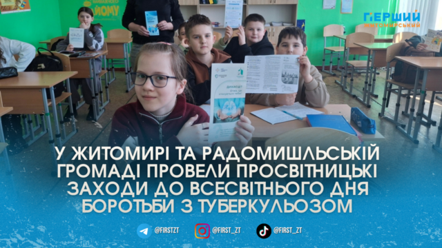 До Всесвітнього дня боротьби з туберкульозом фахівці Житомирського районного відділу ДУ «Житомирський обласний центр контролю та профілактики хвороб МОЗ України» провели санітарно-просвітницькі заходи у ліцеях №19, №16 та №28 імені Івана Виговського у Житомирі. Про це повідомили в установі.