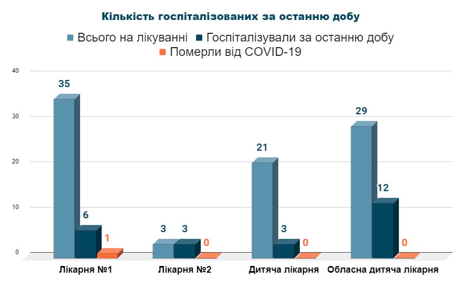 Найбільше – у лікарні №1 (35 пацієнтів). 20 хворих дітей дитячій обласній та міській лікарнях. У лікарні №2 – троє пацієнтів із Covid.