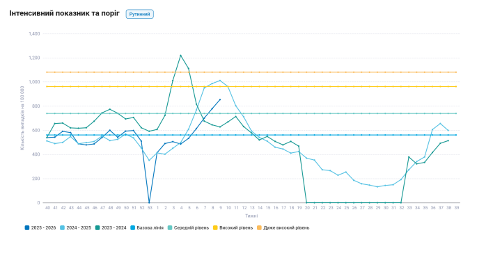 У Житомирській області протягом 9 тижня 2026 року зареєстрували 10008 випадків ГРВІ, що на 9,7% більше, ніж тижнем раніше. Про це повідомив Житомирський обласний центр контролю та профілактики хвороб.