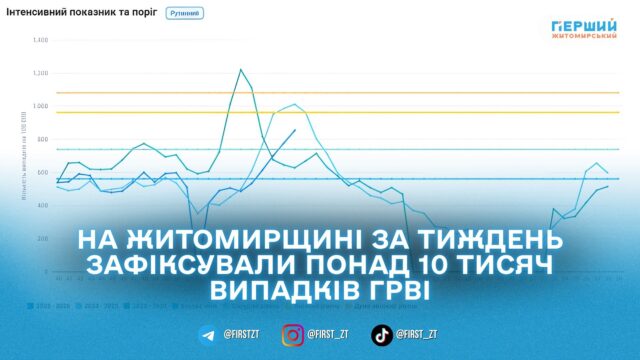 Зростання захворюваності зафіксували у Житомирському районі — на 16,4%, та у Коростенському районі — на 10,3%. У Бердичівському районі показник залишився на рівні попереднього тижня, а у Звягельському — знизився на 8,5%.